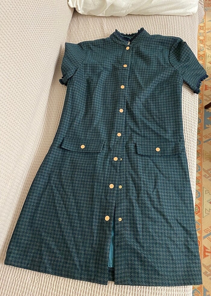 Yeşil kareli mini kısa kollu pamuklu elbise