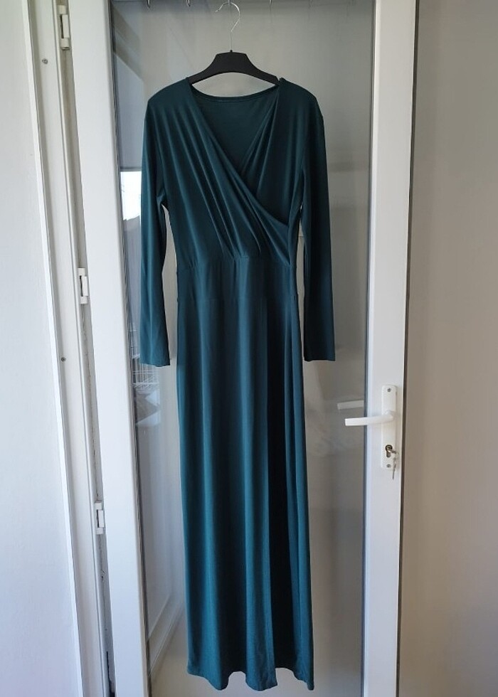 Uzun şık kapaklı yırtmaçlı elbise