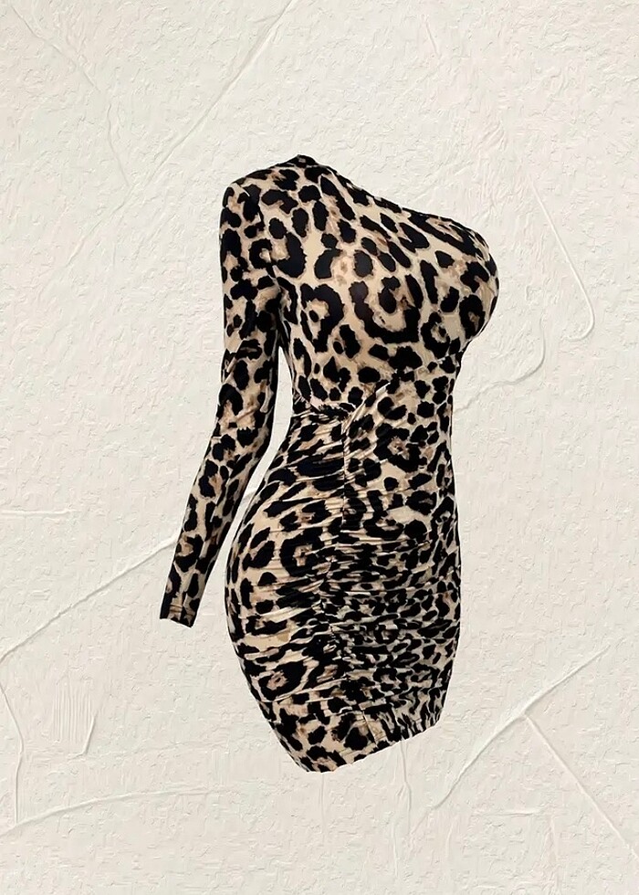 Leopar tek kol elbise 1 defa giyildi temiz kullanıldı M/L bedene uyumludur Esnek bir yapısı var