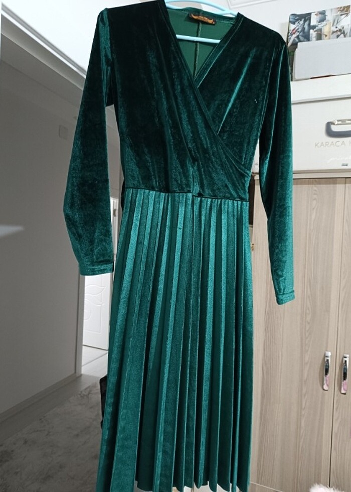 Bir kez giydim kadife elbise hiç bir sorunu yoktur kurdeleli ve pilelidir. S beden m uyumludur