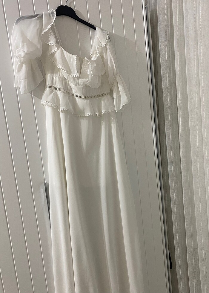 Ürün sadece fotoğraf çekimim de kullanıldı etek kısmında çekim sırasında çekilme ve yırtılma olmuş.Etek kısmının arasında olduğu için giyildiğinde belli olmuyor o yüzden kusurundan dolayı fiyatını uygun tutuyorum.