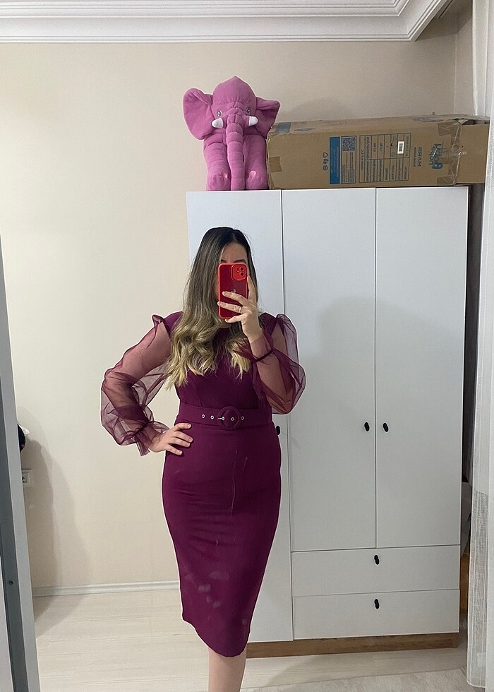 Elbise çok az kullanıldı.kollarını kendim yaptırdım.Midi boydur.Butik elbisesidir.