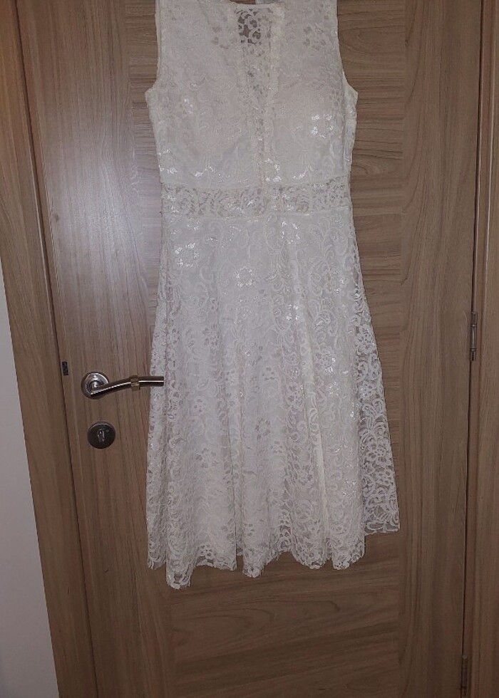 Beyaz özel gün elbisesi sadece nikah günü 1 kere giyildi ic gostermez astarli midi boy elbise