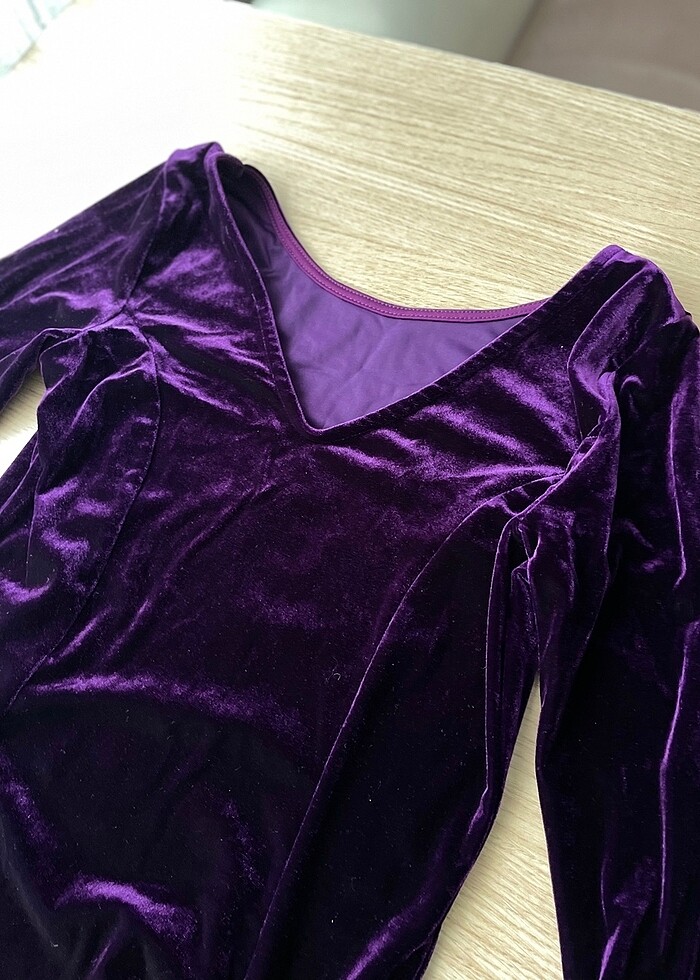 mor kadife elbise,ışık açısına göre parlıyor. hiçbir kusuru yoktur,ihtiyacımız olmadığı için satıyorum