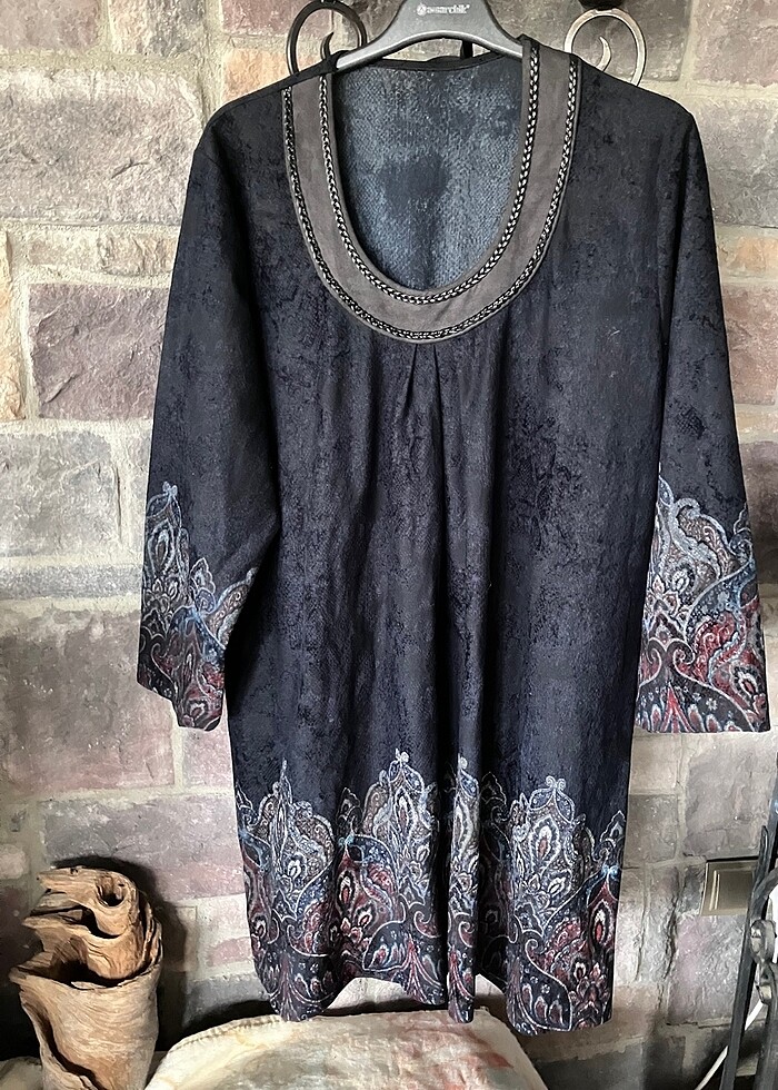 Nubuk kumaşına benziyor siyah tunik olarak da kullanılabilir