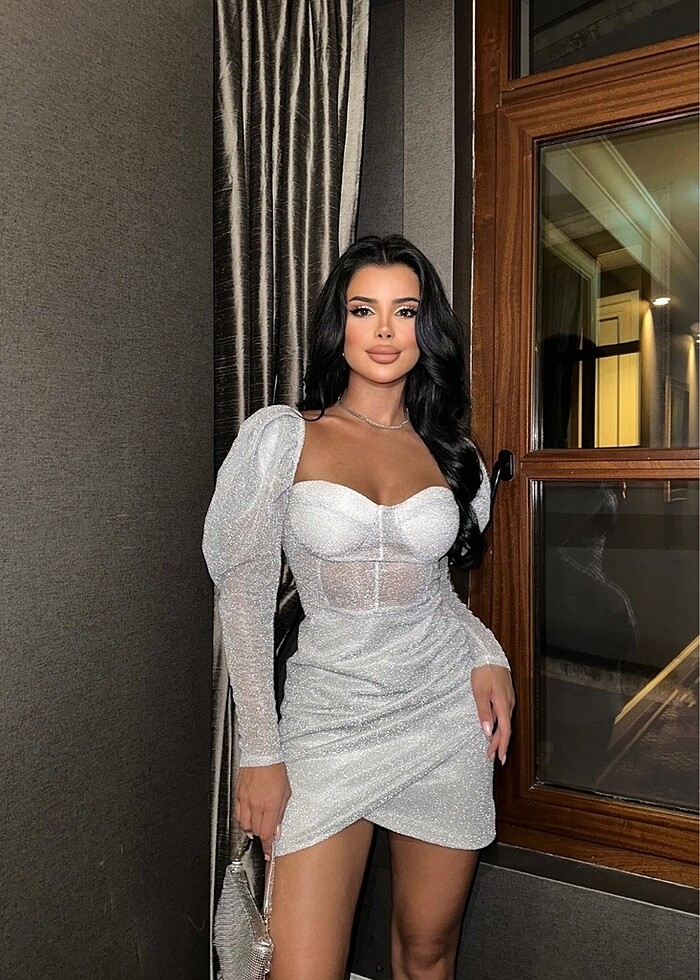 Gri sinli prenses kol elbise giyilmedi etiketi üzerinde