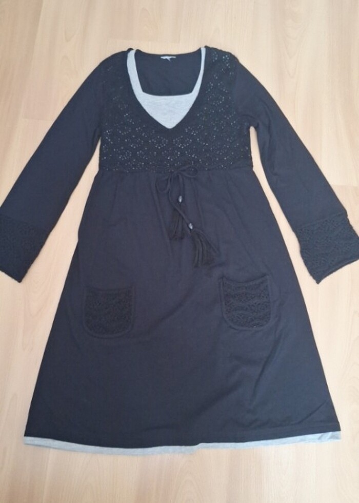 Siyah elbise ( boyum 170 benim dizimin hizasında) uzun kollu cepli elbise penye elbise hiç kusuru yok