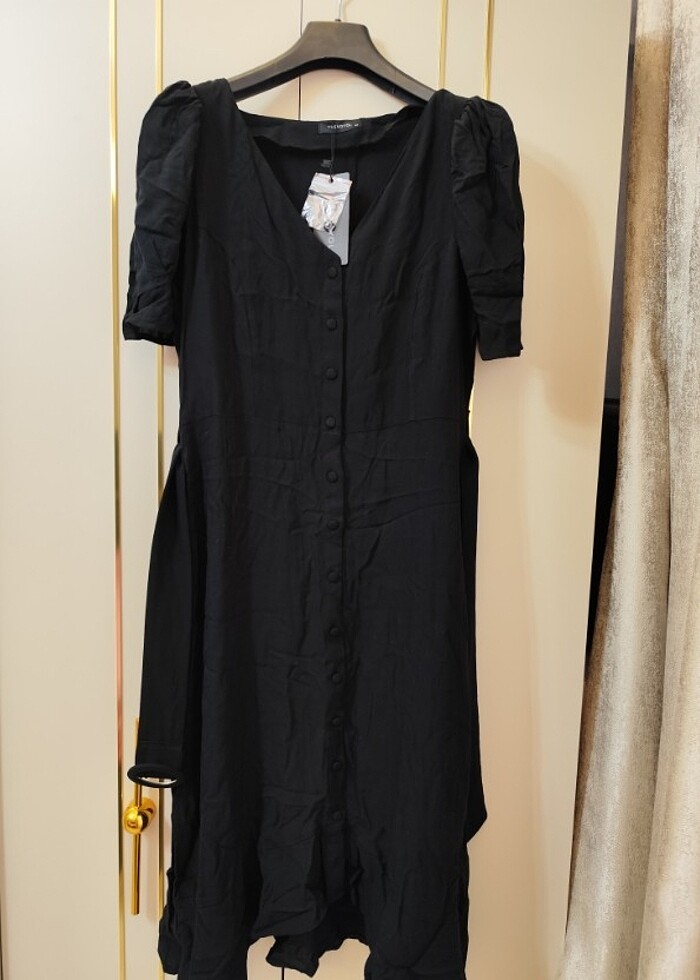 Etiketli ürün. Etek kısmı fırfır detaylı beli kemerli Boy 100 cm Bel 84 cm Basen 118 cm