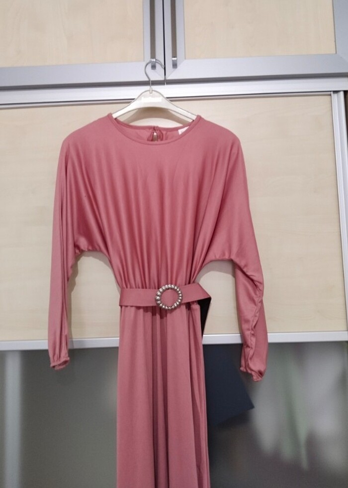 Kemerli saten görünümlü elbise