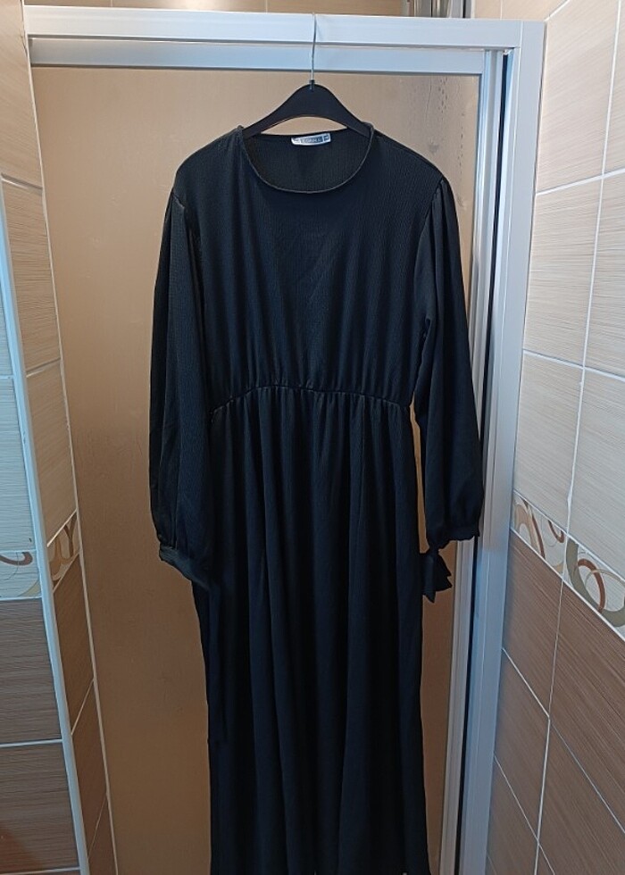 1/2 kere giyildi yeni hiçbir sorunu yok kendime yakıştıramadım o yüzden satıyorum boyu gayet iyi uzunlukta kolları bağlama detaylı siyah renk elbise