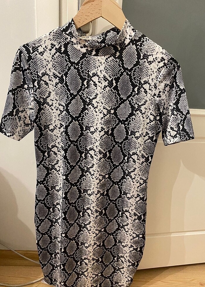 Yılan derisi model vücudu sarıyor yapışıyor mini elbise bi kere giydim bohçamda