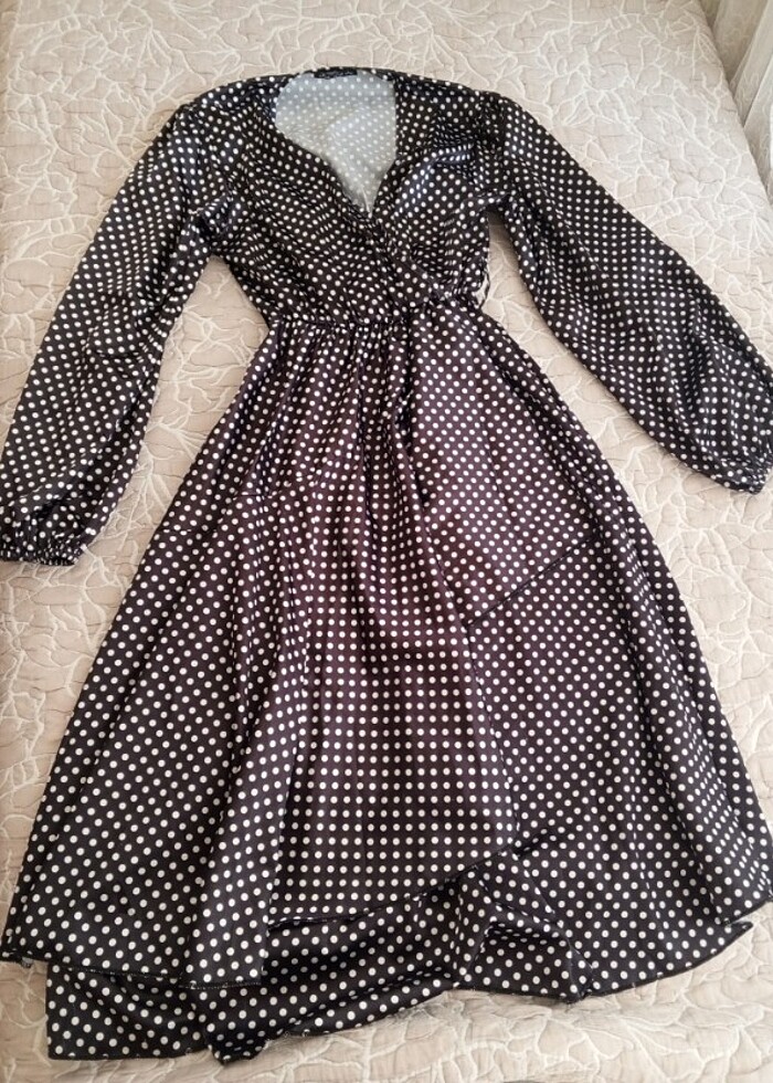 Puantiyeli saten midi boy elbise 40-42 beden marka temsili