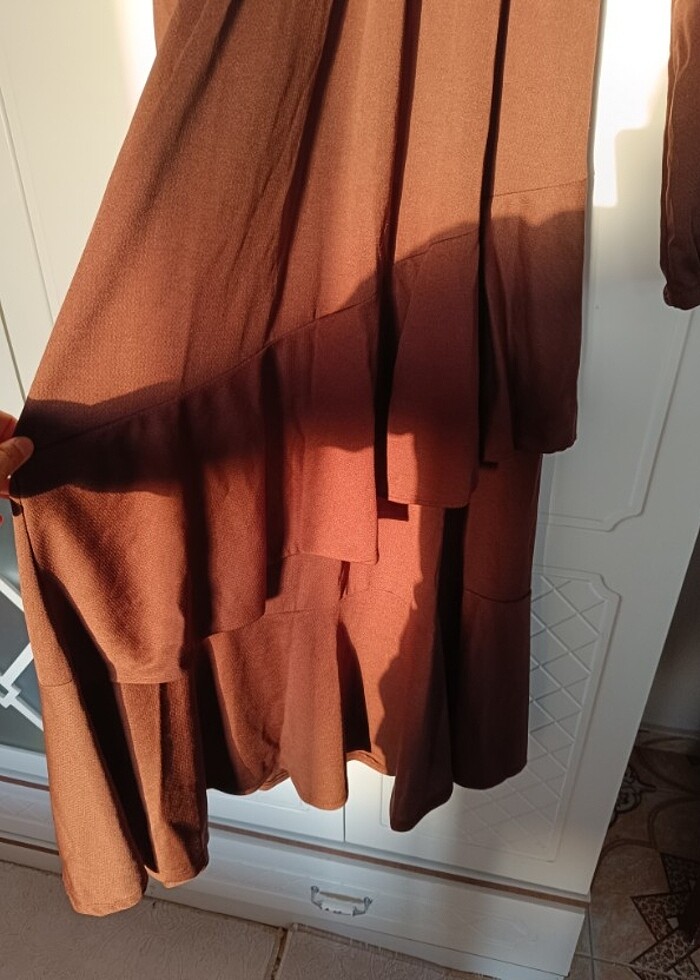 Etek kısmı fırfır detaylı bilekten elbise