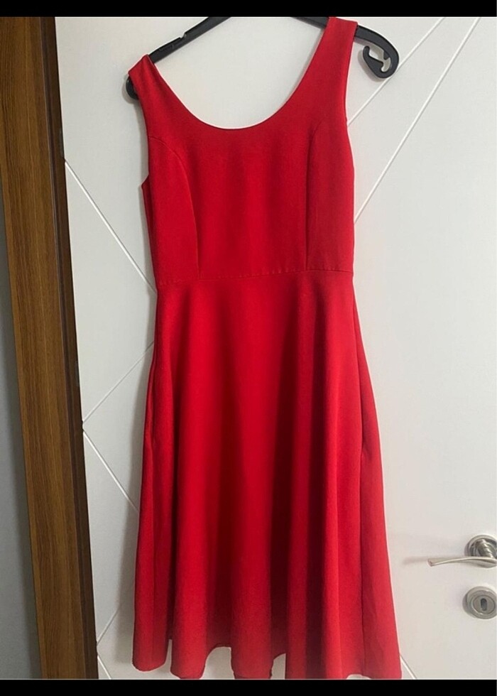 Kırmızı elbise temiz kullanıldı boy bilek boyu