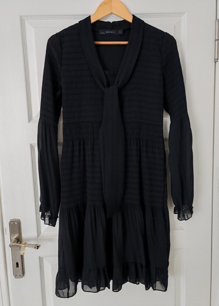 Zara, Siyah şık elbise kollarının yarısı tül.