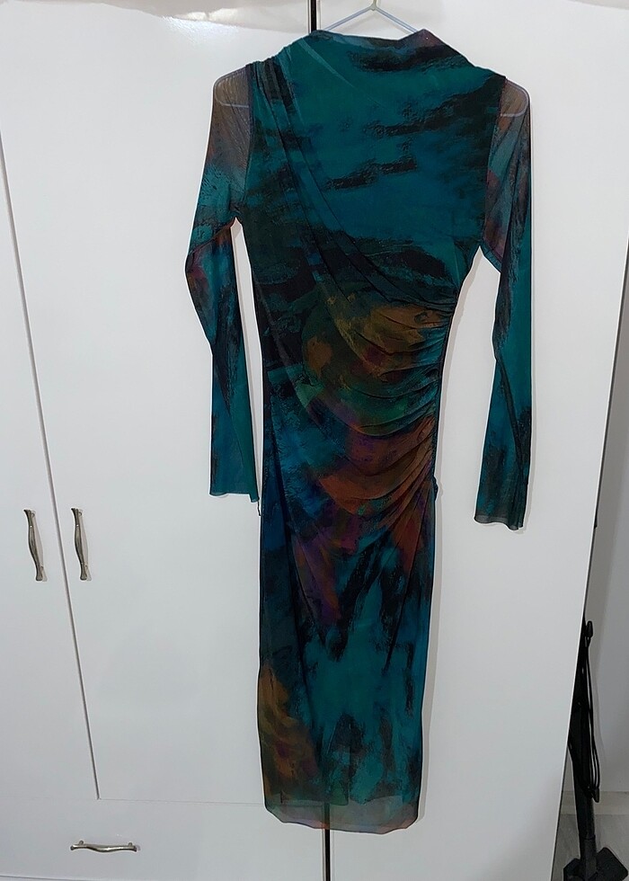 Az kullanıldı vücudu sarar astarlı renkli transparan elbise