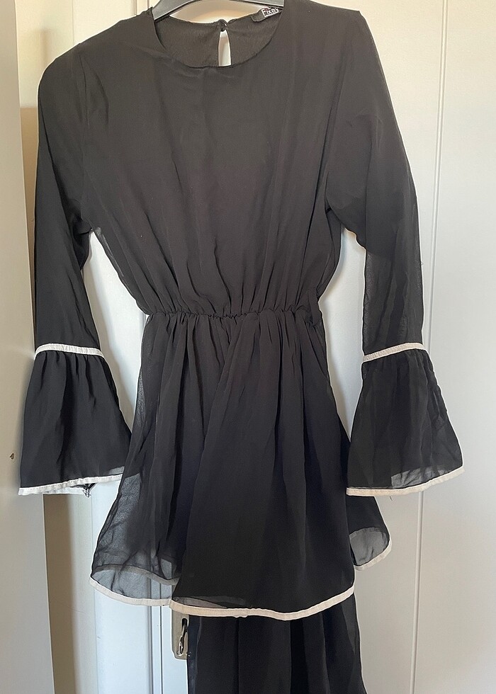 Astarlı 36 beden siyah elbise çok ufak kollarında ipler çekilmiş ama siyah olduğu için fazla belli olmuyor kemeri yok