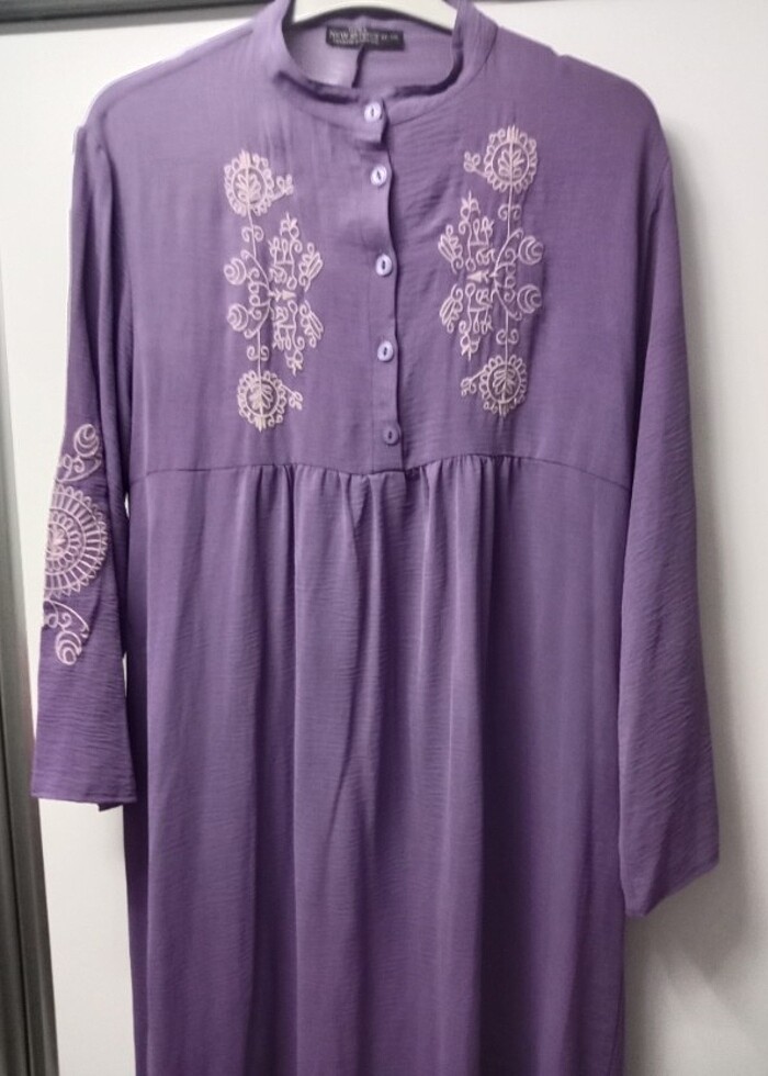 Ayrobin kumaş.hic giyemedim.sifir.sadece yikayip astim.esne kumastir.48,50,52 bedene uygun.liladir.kamaram sıkıntılı olduğu için net çikiyor resimler