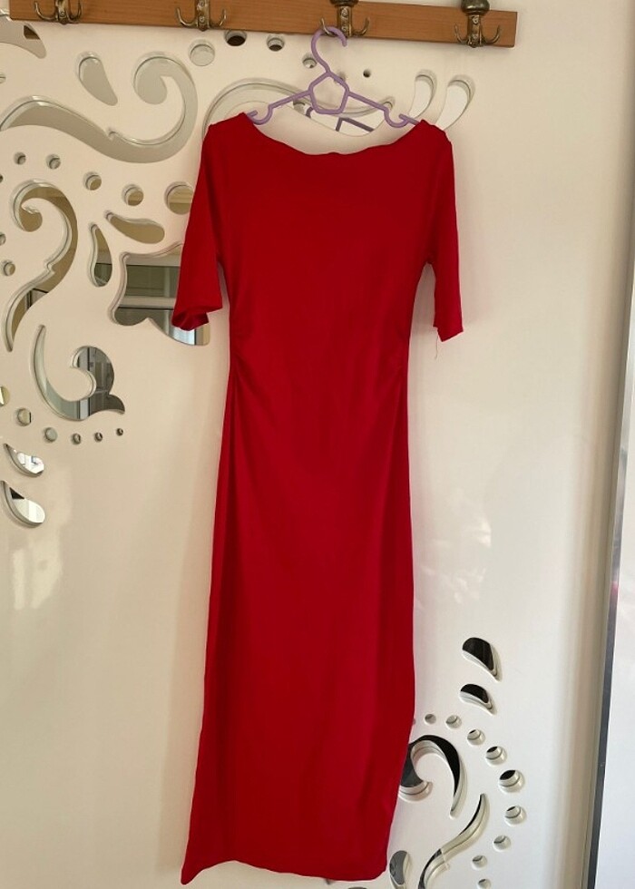 Kırmızı elbise 1 kez giyildi Defosu yok