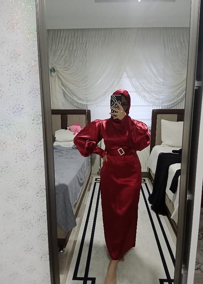 üç kez giyildi ufak yıpranması var ama kemer tokası denk geldiği için belli değil, 36-38 uyumlu