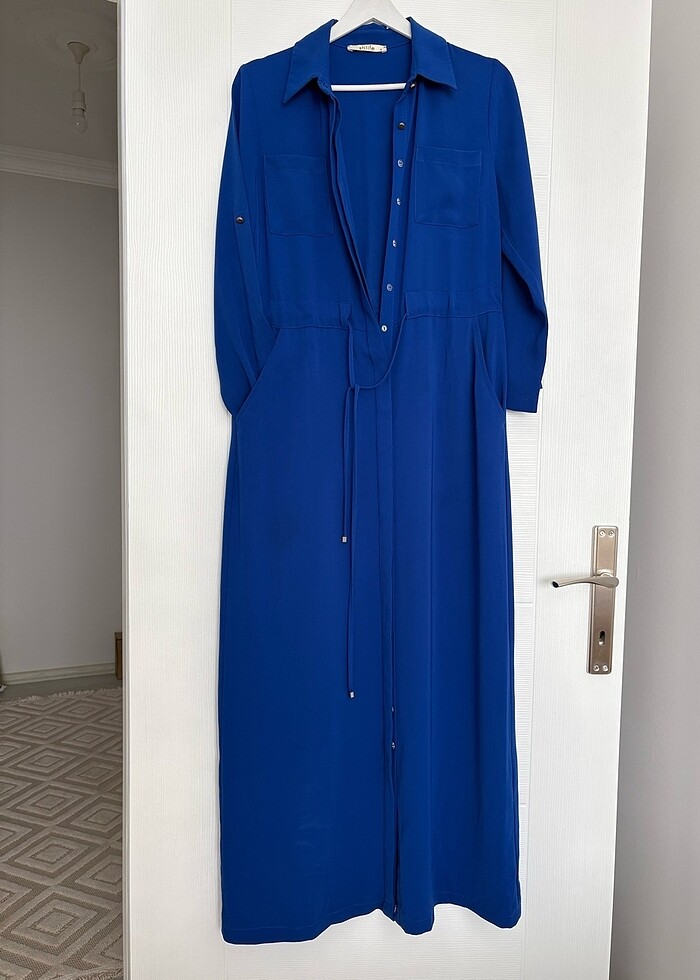 S-M beden uyumludur. Gömlek elbise ve ferace olarak kullanıma uygun