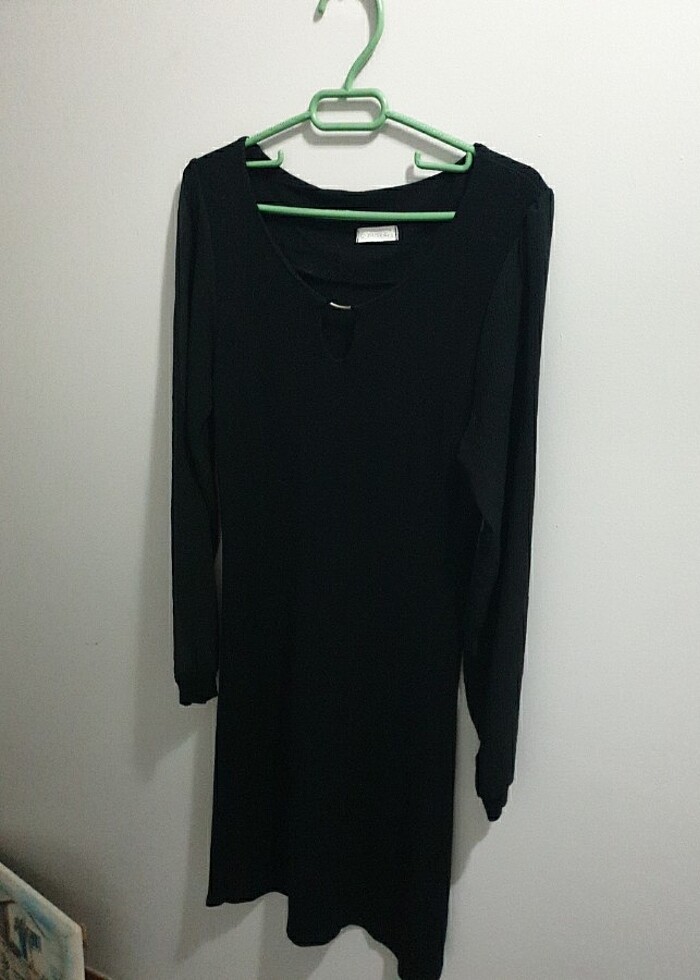 Dizaltı kolları tül detaylı siyah elbise L beden. Esnek kalın penye. Rengi ışıktan soluk görünüyor ama canlı siyahtır