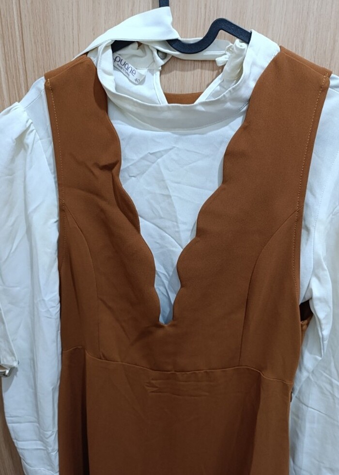 Ürünü istemde giydim. İki parça olarak gönderilecektir. İçindeki gömlek başka şeylerle de kombin edilebilir yandan fermuarlı kaliteli ürün. Salopet arkası desenli 38bedene daha rahat olur. 40 beden uyumlu