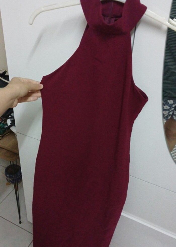 Bogazli kalem elbise yırtmaçlı rengi morumsu bir bordo trendyolmilla