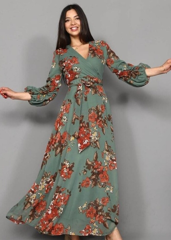 L bedendir fakat S- M uyumludur.Şifon tarzı yazlık elbise maxi boydur.Hiçbir kusuru hiçbir lekesi yoktur sadece bir kere giyildi.