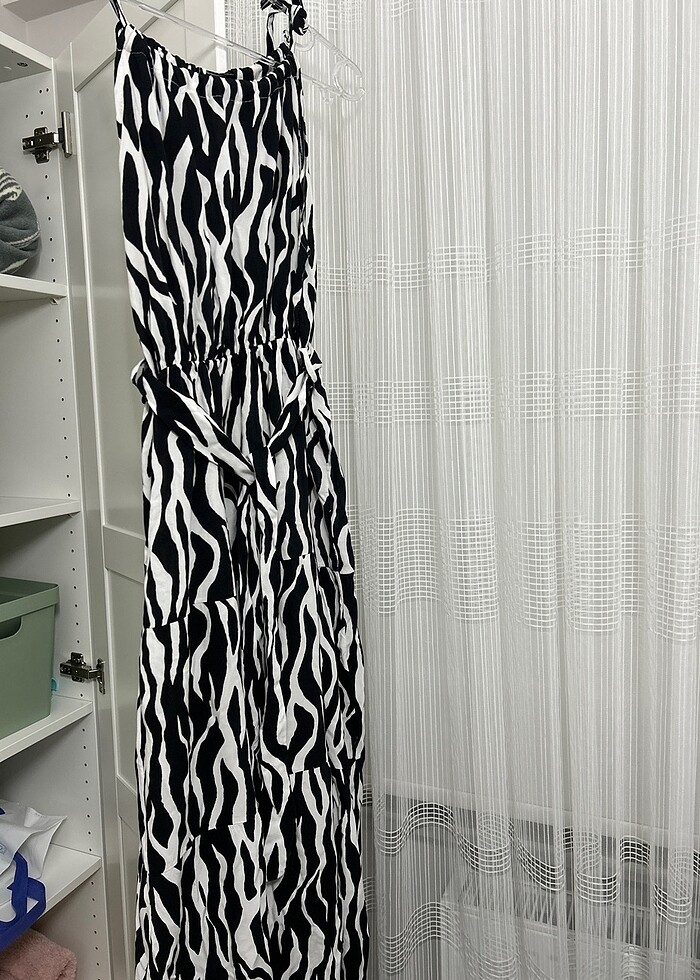 1-2 kez giyildi rahat yazlık boyundan ip bağlamalı kuşaklı elbise bel kısmında lastik vardır .