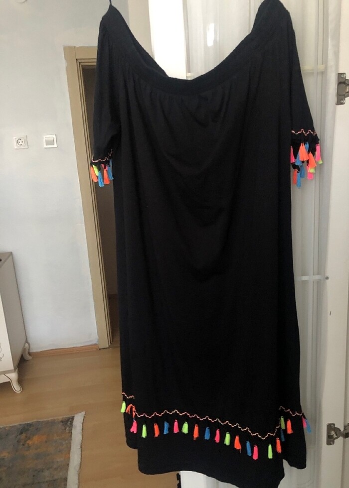 Kısa günlük elbise l xl uygun kol ve etek detayları renklı güpürlü