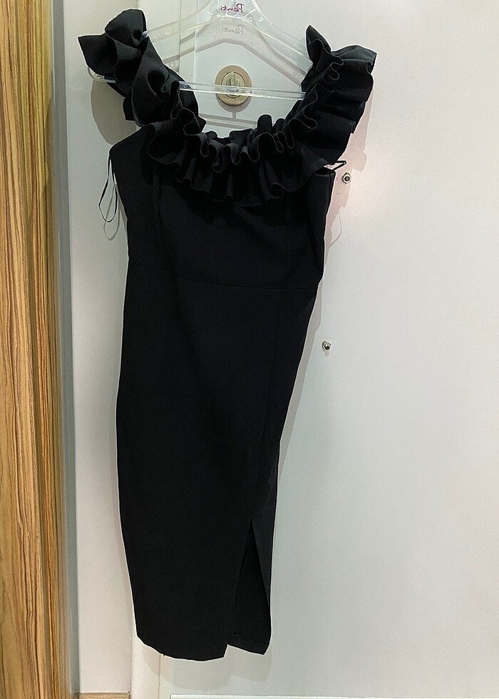 Midi boy önden yırtmaçlı elbise bel kısmın ufak bi tadilati var