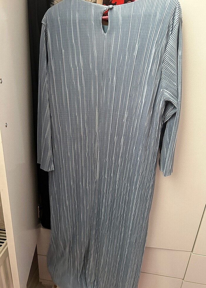 Düz kalem elbise bedene oturmuyor fakat bir butikten alındı bir kaç kere giyildi ama çok temiz rengi çok güzel grimsi bir mavi