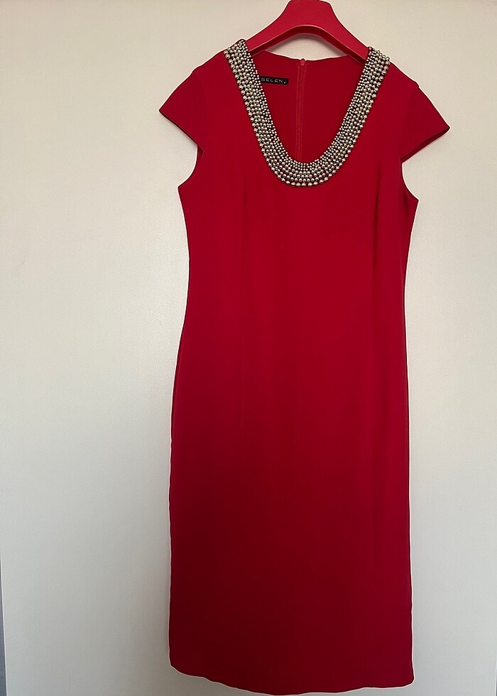 Bir kere giyildi. Yakası boncuk işlemeli.içi astarlı.40 bedene uygun. Sırttan gizli fermuarlı.