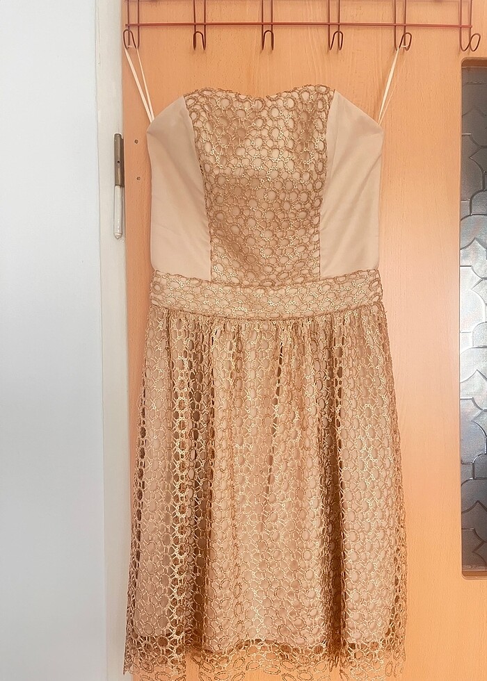 Bir kere giyildi. Elbisenin boyunda herhangi bir tadilat işlemi yok. Giyeceğim güne kadar kilo verdiğim için o gün acele bir şekilde elbisenin arkasında daraltma işlemi vardır. ikişer cm’den 4 cm kadar daraltılmıştır. Fotoğraflarda mevcuttur.