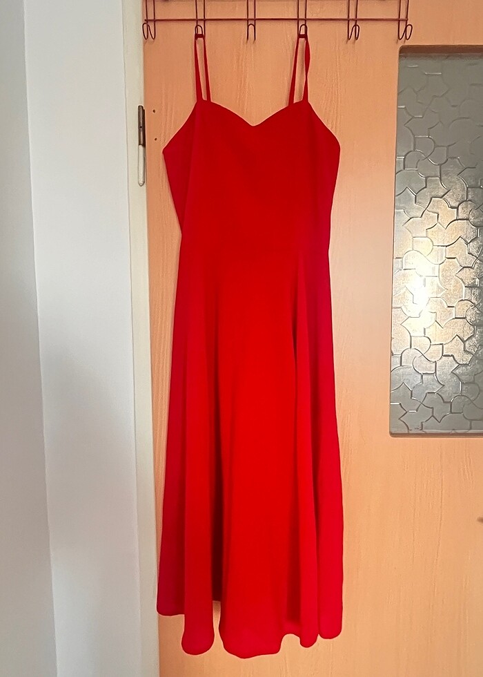 Özel dikim elbisedir. Sadece bir kere giydim. Midi boydur. Yandan yırtmaçlı. Yırtmaya kadar astar vardır. Elbisenin ölçüleri mevcut. 48 kiloya kadar olanlar rahatlıkla giyebilir.