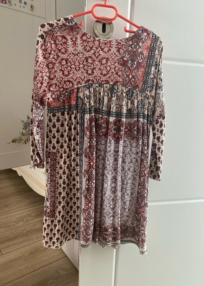 İnce müslin kumaş mevsimlik elbise sadece arka düğmesi soyulmuş resimlerde var