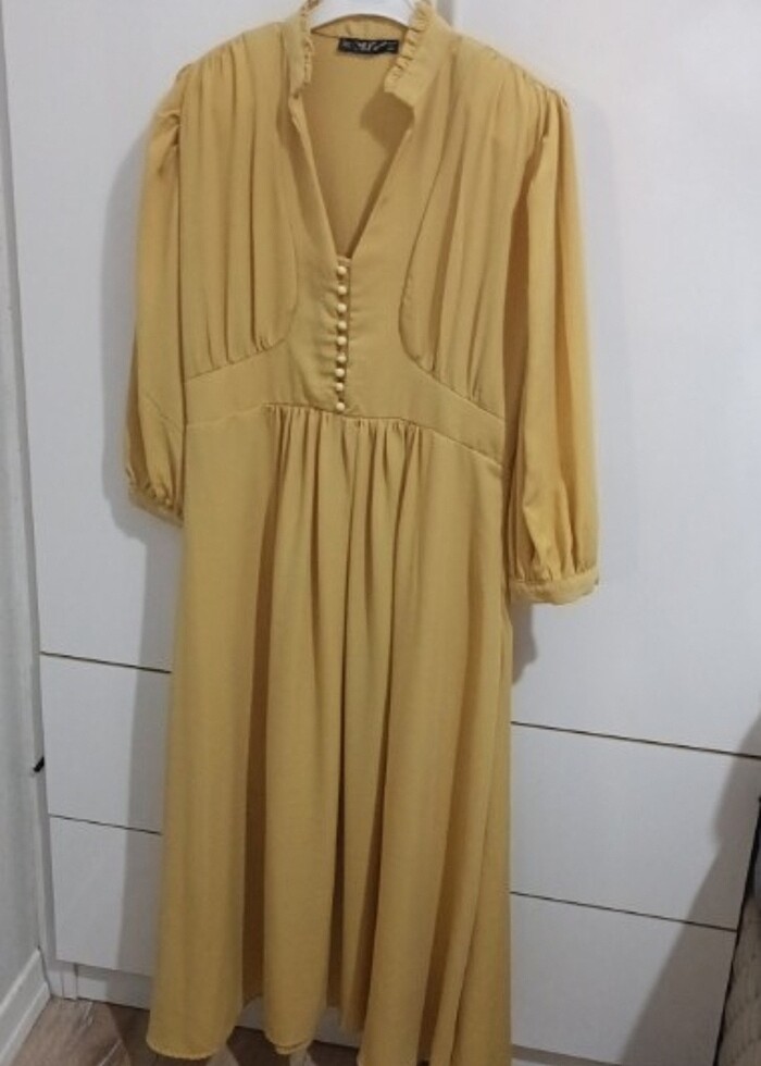 Sadece 1 defa giyildi sorunsuz iki yani yırtmaçlı vatka detaylı elbise