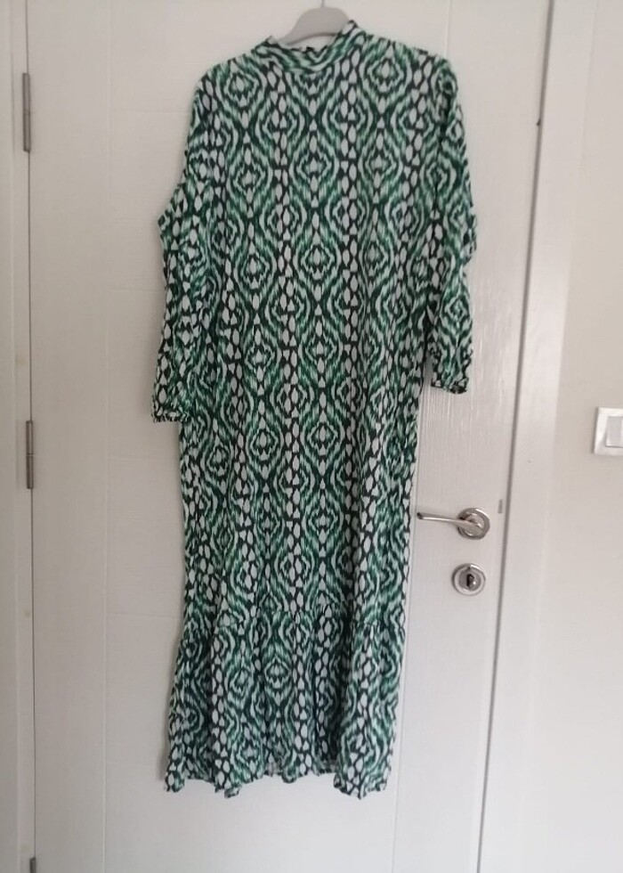 Viskon kumaştır bedeni uymadığı için satıyorum elbise boyu 130 cmdir iki kol arası 50 cmdir.