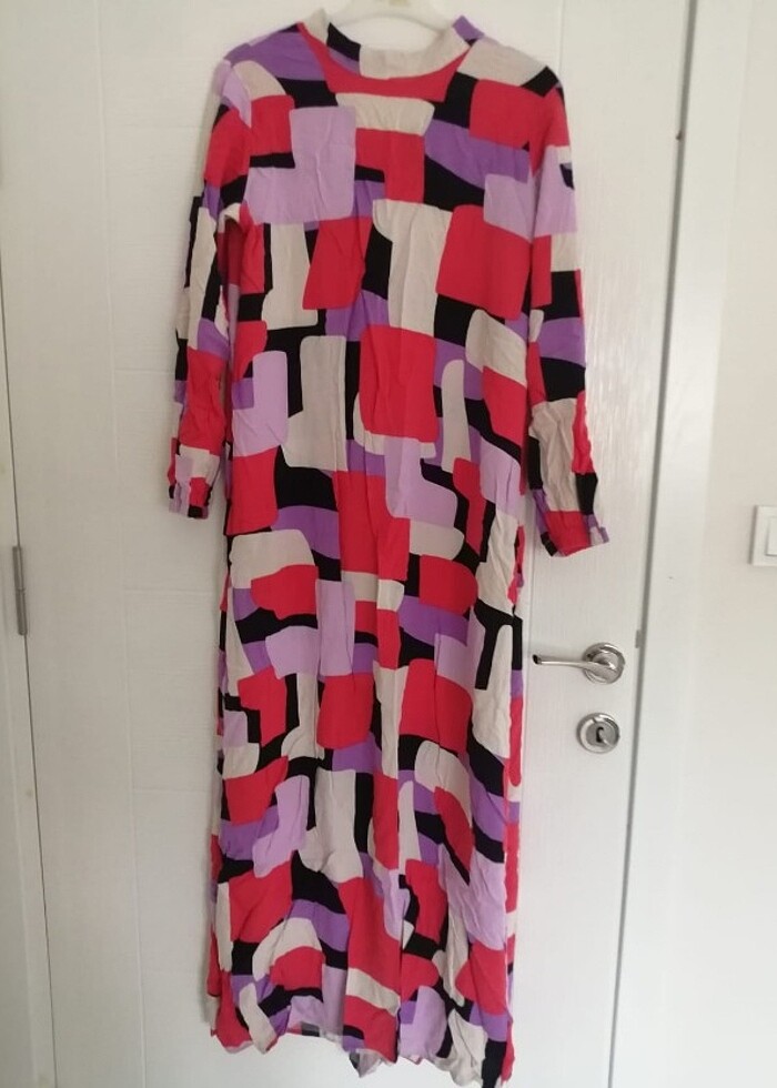 Kullanmadığım için satıyorum viskon kumaştır boyu 135 cm iki kol arası 47cm