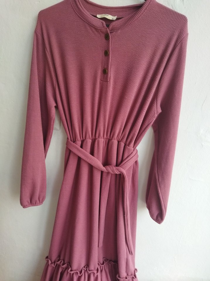 127cm hiç giyilmedi sadece 1 kere yıkandı. şalını da isterseniz ekstra 200tl Bu pembe uzun elbise, uzun kollu, düğmeli ve belden bağlamalıdır. Rahat kesimi ve bohem tarzıyla günlük kullanıma uygundur.
