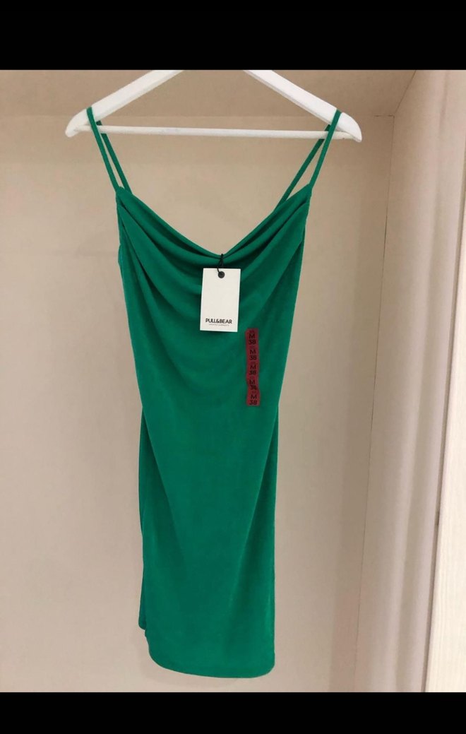 Yeşil önden yırtmaçlı parlak