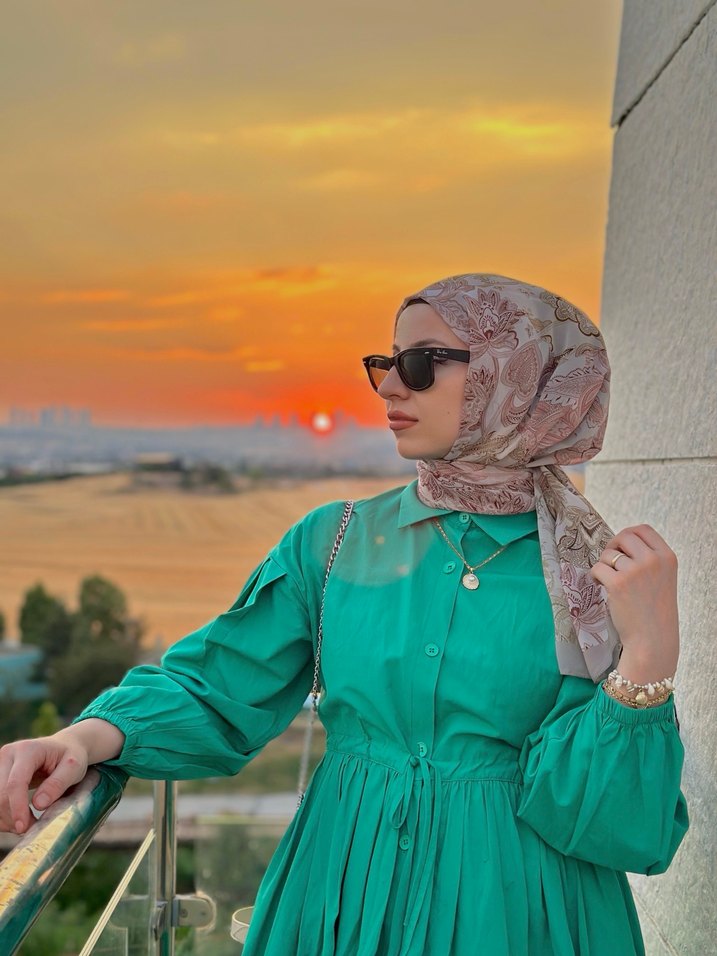 Kolları hafif balon. Beli büzgülü iple ayarlanabilir. Düğmeli uzun kollu uzun elbise. Bağlama yerindeki düğme kırıktır ama iş görür. Büzgüden dolayı zaten görünmemektedir. Yapısı çok güzel duruşı çok güzel başka bir defosu bulunmamaktadır. Marka temsilidir.