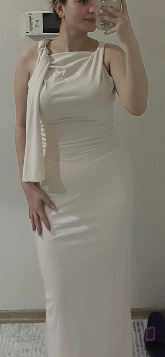 Yurtdışından aldım. Hiç giyilmedi etiketi üzerinde duruyor. Kumaş yapısı ince ve yumuşak. Rengi tam beyaz değil. 36-38 beden rahatlıkla olur. Detaylı bilgi için yazarsanız yardımcı olabilirim .
