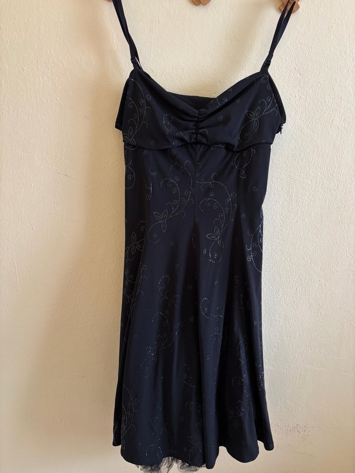 Payetli, siyah altı tül elbise. Arkası lastikli 36-38 bedene uyar. Üstüne bolerası da vardır. Hiçbir sorunu yoktur.
