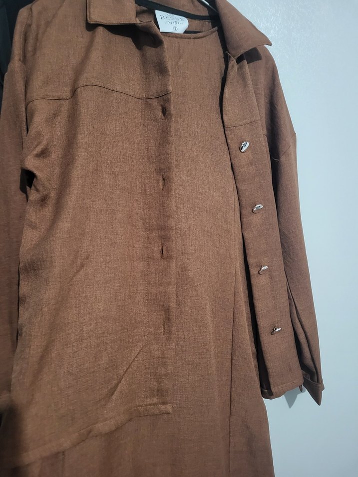 sıfır hiç giymedim bedeni 2 daratlama yaptım ben 36 38 bedene olur kolsuz elbise ve ceketten oluşuyor