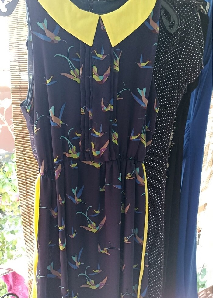 Bebe yaka şifon elbise 36 beden üzerinde kuş desenleri var çok tatlı duruyor