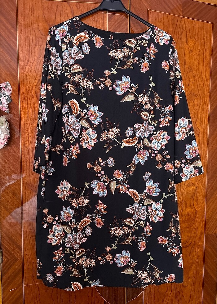 Elbise siyah üzeri çiçekli