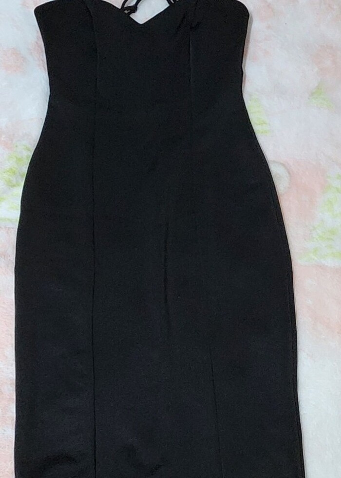 Sadece 1 kez kullandım. Kalp yaka. Arka tarafında ortasında minik bir yırtmacı var. Aynı zamanda fermuarı var. Esnek kumaşı var. Askıları ayarlanabilir. Vücuda oturuyor hafif balık model.