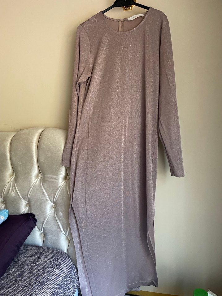 Al Marwah marka simli somon purda arası cok güzel bır rengı var yanlardan yırtmaçlı yenı gıbı bır kere gıyıldı